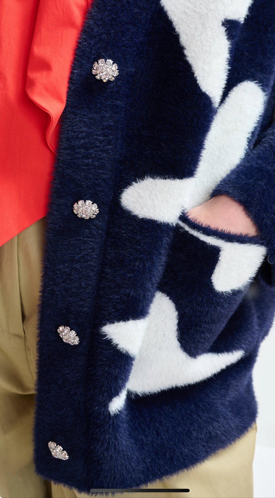 Comodo cardigan comodo dalla silhouette oversize con spalle scese per una vestibilità rilassata, mentre i bottoni con strass donano un tocco frivolo alla stampa con lettere all-over.
