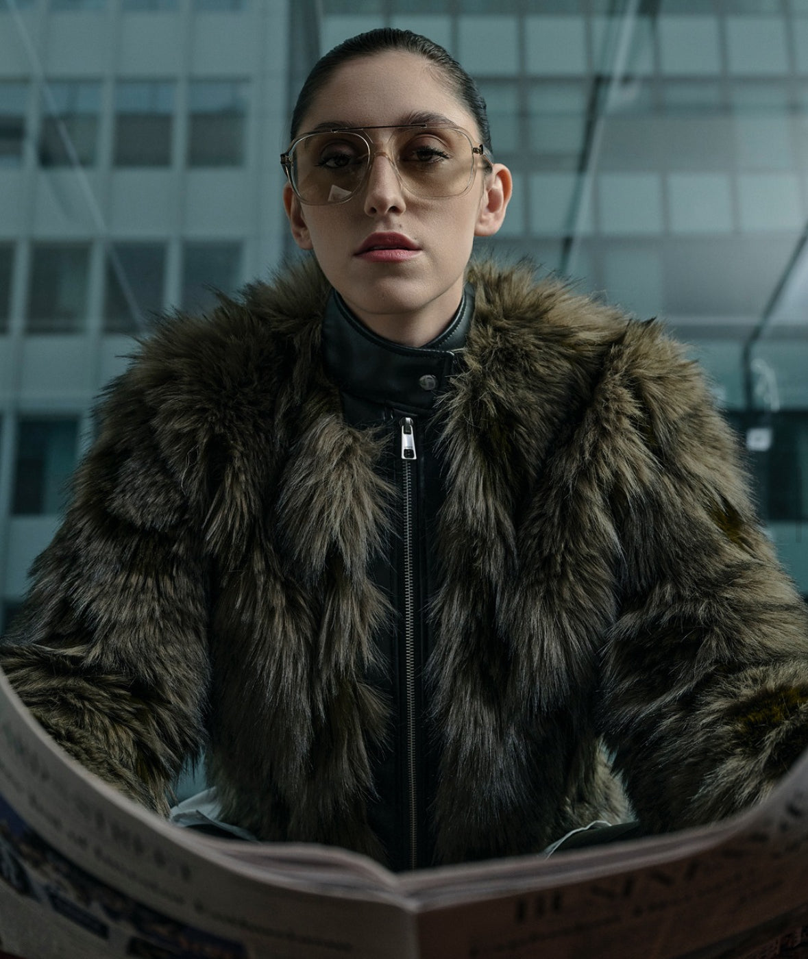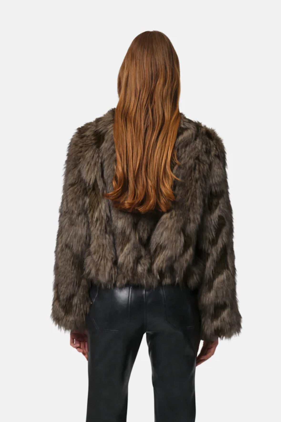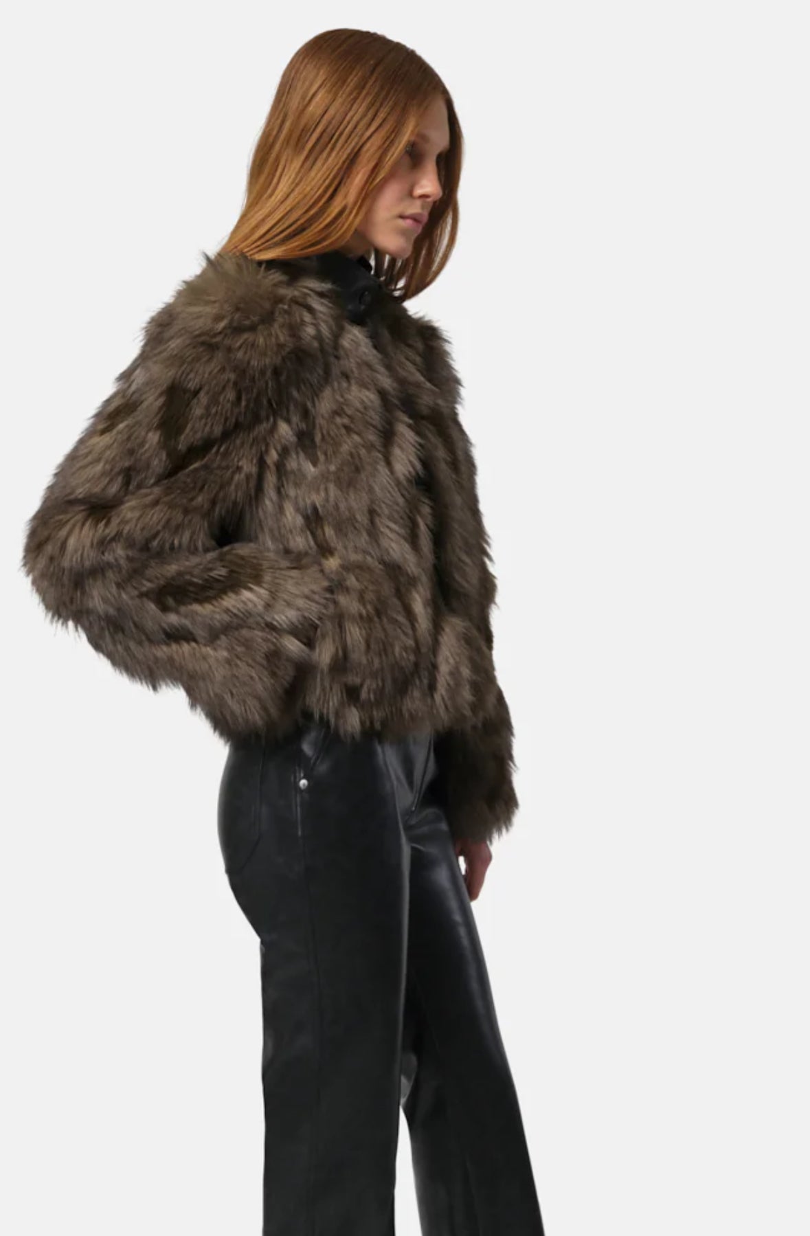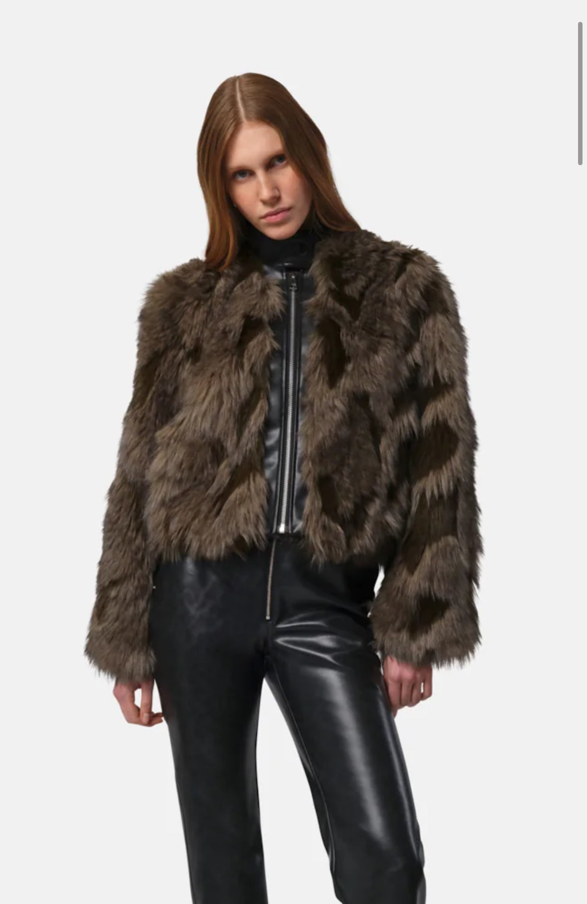Pelliccia sintetica patchwork riciclata con inserti in pelle SANS.